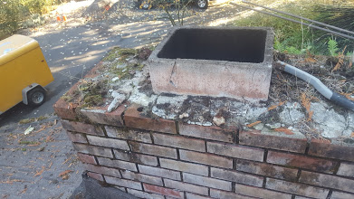 In order for top-closing dampers to be installed, there needs to be a solid crown and flue tile on top of a chimney that is in good repair. Loose bricks and loose or missing mortar joints need to be addressed before installing a top-closing damper. A crown is a bed of sand and cement (sand mix) poured on top of the chimney that cements a flue tile to the top of the chimney. Top-closing dampers are mounted onto the top of the flue tile with a high-temperature adhesive. Here is a photo of a crown, flue tiles and chimney in good repair.