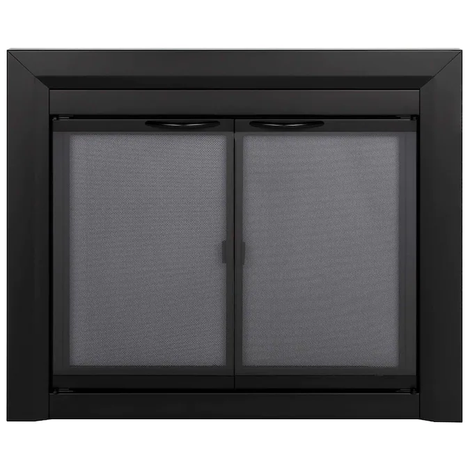 Spark screens keep sparks and embers from poppping out of the firebox and landing on carpets or wood floors. Glass doors do the same thing. When purchasing glass doors, read the literature and make sure that the glass is rated for high temperatures if you intend to close the doors while burning a fire. We sell and install Pleasant Hearth glass fireplace doors as we have found them to be well-constructed and economical. We do not recommend the accordian-type glass doors because it is difficult to clean the glass on the back side. We recommend the standard doors. They come with hinged spark screens.