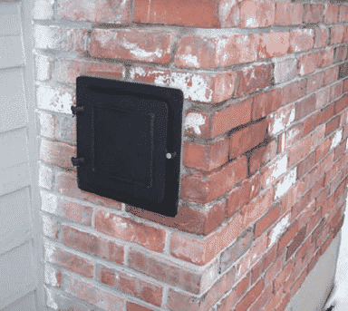 Some open fireplaces have ash containers, and some do not. Some woodstoves have ash drawers that can be pulled out for easy disposal of ash. The fireplace will have a door at the back that ash can be scooted into. Somewhere on the exterior of the chimney will be a clean-out door to remove the ash. Older houses can have ash dumps that are quite large and take several years to fill up. It is best to clean out the ash dump annually. We do not clean out ash dumps as part of the chimney cleaning servlce. A worn or missing clean-out door needs to be replaced to prevent fire hazards. This is particularly true if the clean-out door is located inside the house (usually in the basement.)